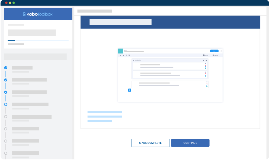 KoboToolbox Academy is our official online learning platform, offering high quality self-paced courses—designed by our team of experts.